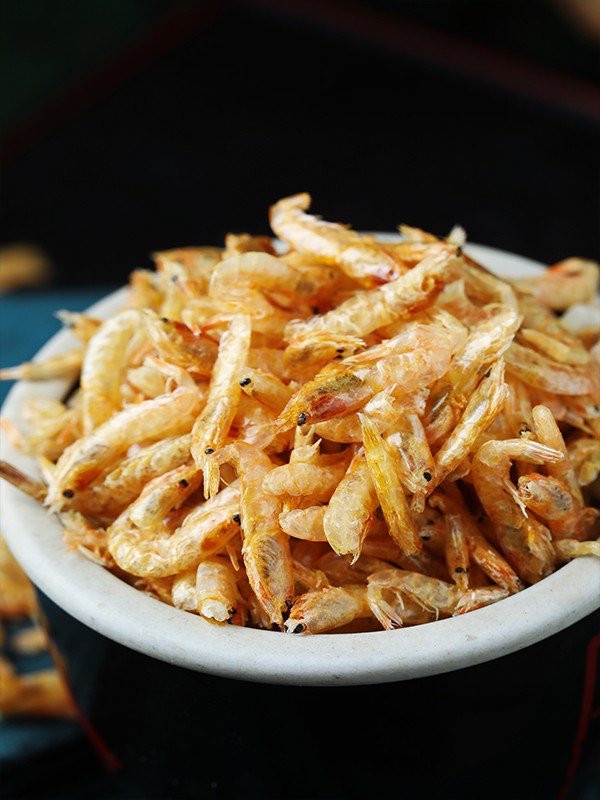 以本地红虾、花虾为原料,经烘干分选、速冻、烘干,制成干虾、冻虾、虾粉、虾仁等产品,