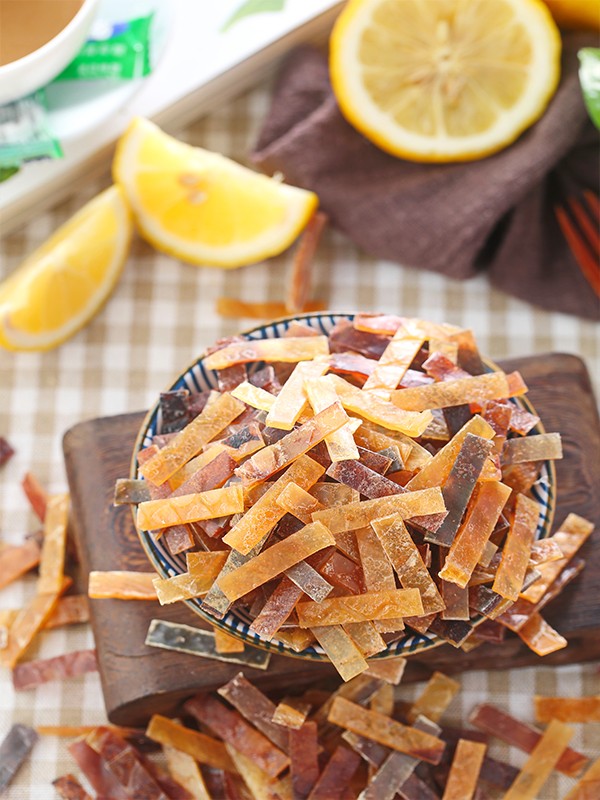经不同工序,制成生食、裹粉、素干、味干、烟熏等系列,肉质